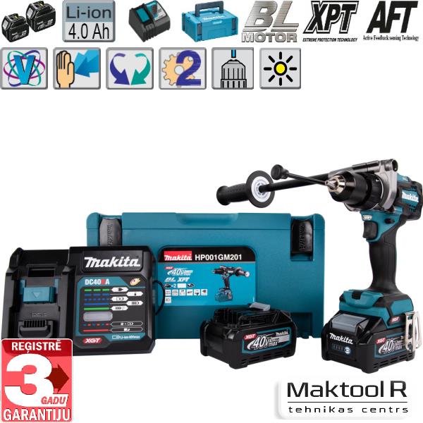 Akumulatora triecienurbjmašīna/ skrūvgriezis 40V HP001GM201 XGT (2×4,0Ah)