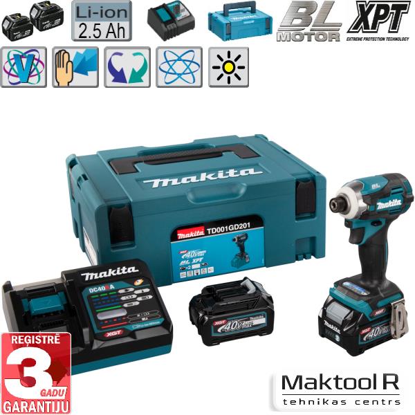 Akumulatora triecienskrūvgriezis XGT 40V 220Nm TD001GD201 (2×2,5Ah)