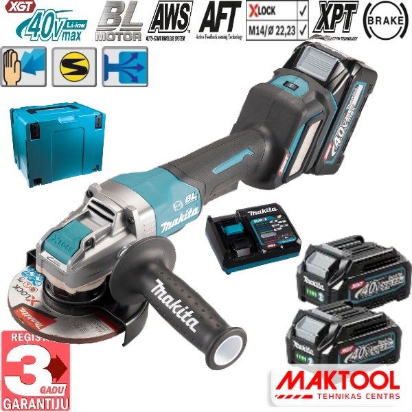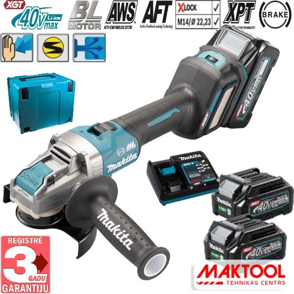 Leņķa slīpmašīna X-Lock 125mm XGT 40V BL (2x4Ah DC40RA) Makita GA041GM201