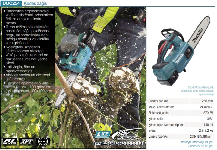 Komplektācija: DUC254z, 1x 5,0Ah akumulators, lādētājs DC18RC.