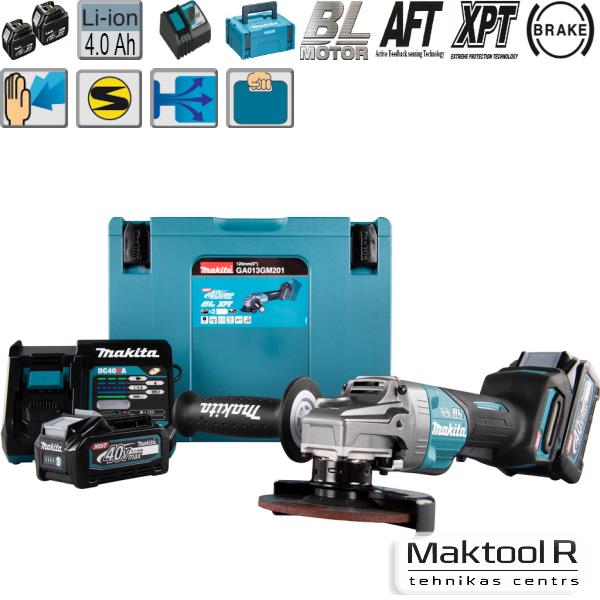 GA0013G ir akumulatora jaunas paaudze leņķa slīpmašīna, kas nodrošina 1000 W maiņstrāvas slīpmašīnas darba rādītajiem līdzvērtīgu jaudu un izcilu efektivitāti. Ātrums bez slodzes līdz 8500 apgriez./min., slīpēšanas laikā jūtama instrumenta lielā jauda. Darbs ar leņka slīpmašīnu ir ērts un drošs. Jaunais, bez papildu instrumentu palīdzības uzstādāmais slīpripas pārsegs un ērtais sviras slēdzis, nodrošina instrumenta ērtu izmantošanu. Aktīvā atgriezeniskās saites tehnoloģija (AFT) aptur motora darbību gadījumos, kad negaidīti tiek bloķēta slīpripas rotācija. Papildu drošībai instruments aprīkots ar elektriskajām bremzēm.