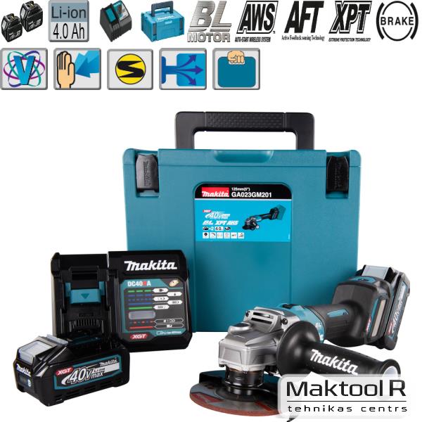Leņķa slīpmašīna XGT 40V (2x4Ah) Makita GA023GM201