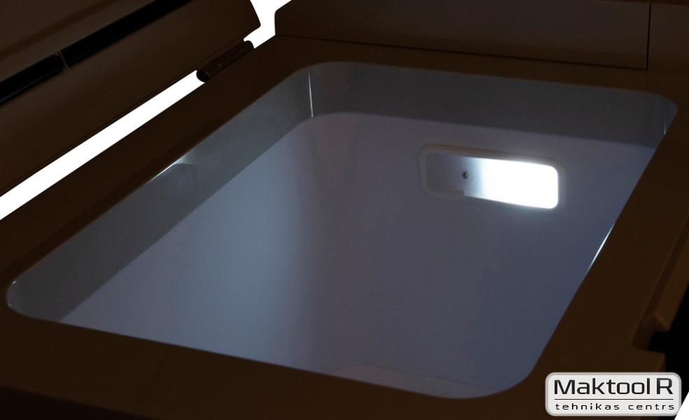 Kopā ar akumulatoriem, kasti var izmantot arī ar maiņstrāvu un 12V / 24V līdzstrāvu, tāpēc to var izmantot gan transportlīdzeklī, gan ārpus telpām (AC adapteris komplektā neietilpst!).