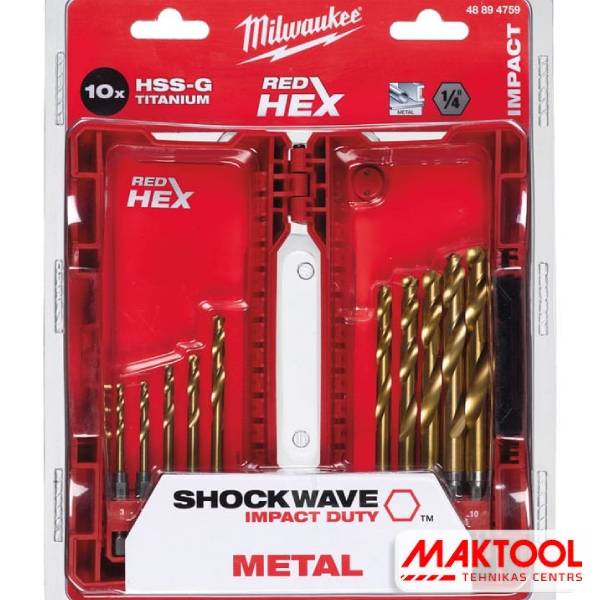 Urbju komplekts 10gab (3-10mm) 1/4″hex HSS-Tin Milwaukee 48894759